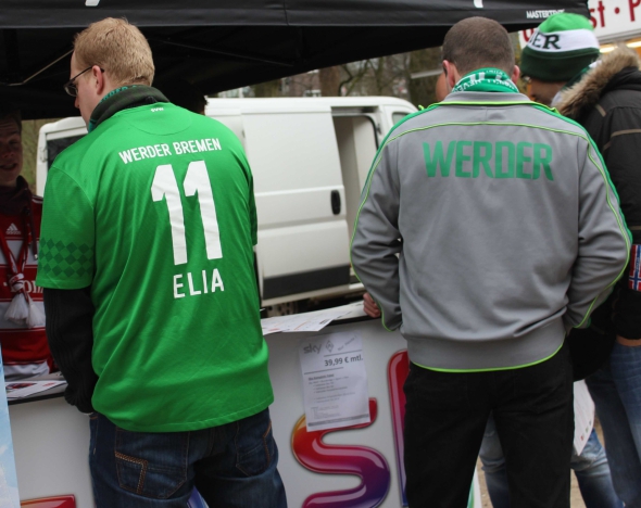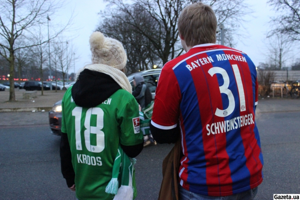 Заинтересовала одна пара: она - в шарфике "Баварии", а он - в шарфике "Вердера". Оба сошлись на том, что выиграет команда Хосепа Гвардиолы. Хотя мужчина при этом отметил, что Скрипник - очень хороший тренер. Кстати, им на вид лет по 50. Сказали, что из-за футбола никогда не спорят.