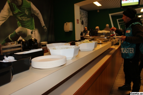 "Шмон" на входе хороший. Стюарды каждый карман проверяют у болельщиков. Неудивительно, что за полтора часа все уже рвутся на трибуны. Журналистам проще. Охранник при входе только попросил открыть сумочку.