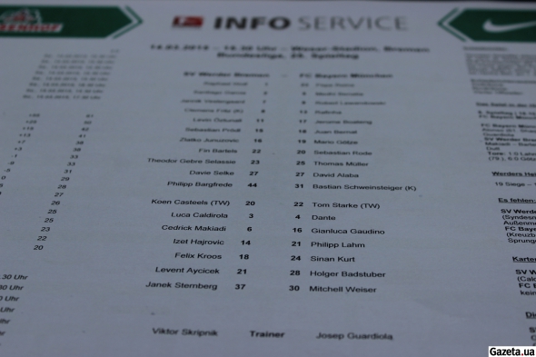 "Бавария" играла без Франка Рибери и Арьена Роббена, но и без них атака мюненцев очень сильная. Также Гвардиола дал отдохнуть Мануэлю Нойеру. А Рейна отметил свой дебют в бундеслиге "сухим" матчем. "Вердер" был без Франко ди Санто.
