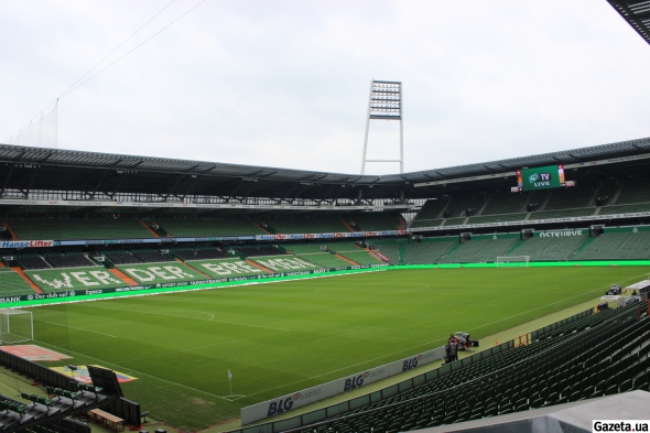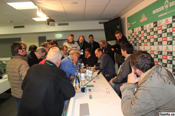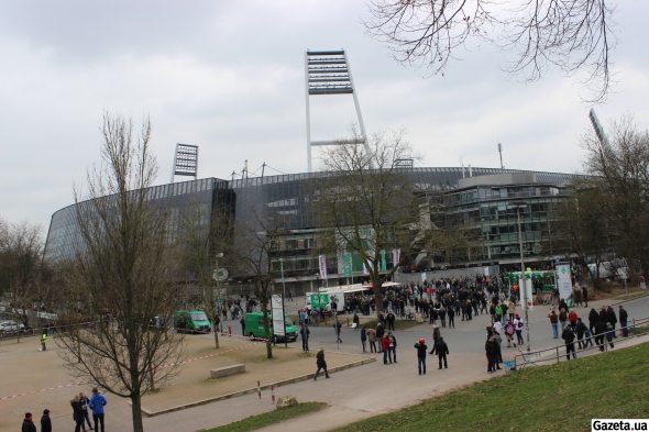 Ровно в 12:00 я вышла из своего холодного и неуютного хостела (это не антиреклама, там действительно отапливают очень экономно). Игра должна была начаться в 15:30 по местному времени (16:30 по киевскому), но мне казалось, что я опаздываю. Поэтому особо не глядя на красивую архитектуру Бремена быстрым шагом отправилась в направлении "Везерштадиона". А точнее, мне были нужны ворота №12. Там выдали аккредитацию на игру и пароль к вай-фай.