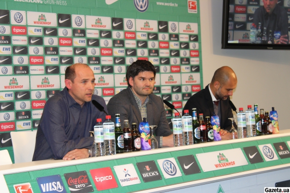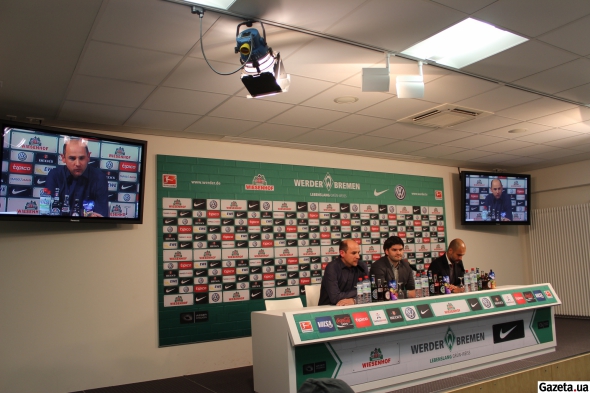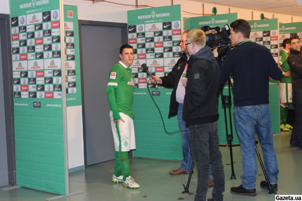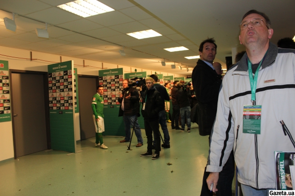 Обменялись с ним несколькими репликами возле Platz 11 - небольшого стадиончика для молодежных команд. Бауманн сказал, что "Вердер" может приехать в Украину в мае и сыграть товарищеский матч. Деталей он не уточнил, но очевидно, что речь идет о "Днепр-Арене" и "Днепре". Ждем!