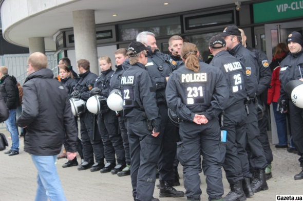Тем временем 42 100 фанатов (именно столько зрителей пришло на стадион) весело проводили время в ожидании матча. То есть, пили пиво, жевали что-нибудь вкусненькое, транжирили деньги в фан-шопе и душевно общались. Даже полицейские и те улыбались. Хотя были вооруженны до зубов.