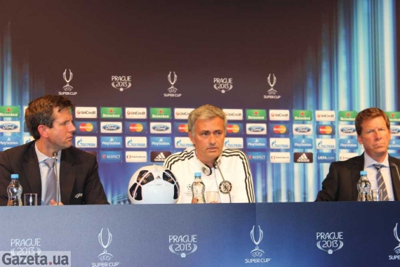 "Ваша статистика очень неправильная, но я не хочу это обсуждать (журналист извинился , но добавил, что это данные от УЕФА). - Возможно, вы и правы, но мне все равно. Хотя я сейчас и в белом, но у меня эмблема "Челси" , - Моуринью показал ее журналистам на своем тренировочном костюме. - Я не победитель Лиги Европы, а Пеп не выиграл Лигу чемпионов с "Баварией" . Мы просто пришли в команды-победители . Если вы хотите говорить о "Реале", то меня здесь нет."