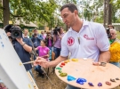 Также Кличко приложил руку к написанию картины. Владимир нарисовал карандашом эскиз, сделал несколько мазков кистью и оставил свой отпечаток пальца. Дорисовывала картину уже одна из участниц лагеря, которой боксер доверил эту почетную миссию.