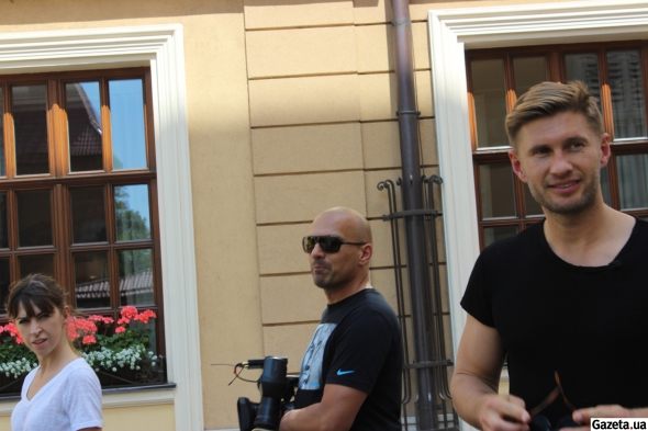 Мимо гостиницы проходит бывший игрок сборной Украины Евгений Левченко. Сейчас он работает экспертом на матчах сборной Украины. Один из ребят просит подписать плакат. Левченко находит себя в форме национальной команды и фотографирует на мобильный.