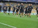 Наставник "Боруссии" привез в Киев 21-го футболиста. Один из голкиперов, Янис Бласвих, тренировался с маской на лице. Настроение у команды, как и говорил Штранцль на пресс-конференции, боевое.