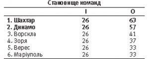"Динамо", Киев — "Заря", Луганск — 4:0; "Верес", Ровно — "Шахтер", Донецк — 0:2; "Ворскла", Полтава — "Мариуполь", Донетчина— 1:0