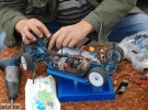 В одной из палаток разместились судьи, а в другой – участники готовились к старту: разбирали автомодели, чистили их запчасти и заливали топливо. На стадионе дальше от трассы были расставлены столы, где ремонтировали свои машины участники, которые либо уже принимали участие в заездах, либо готовились к ним. На столах – поломанные запчасти автомобилей, множество гаек, ключей, болты, отвертки.