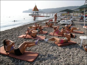 — Фитнес-тур — это отдых, объединенный со спортивными занятиями, — объясняет Ярошенко. — Ведь за неделю нереально изменить фигуру. У женской аудитории пожелания относительно занятий преимущественно одинаковые: "подтянуть" бедра, талию, спину и грудь. Потому тренер делает основную нагрузку на эти "болевые точки".
