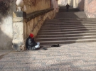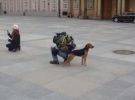 Нищие, которые в центре стоят на каждом шагу - как правило на коленях - используют для своей работы животных. На Карловом мосту видела мужчину, который постелил покрывальце для себя и своего пса. К тому же сверху прикрыл его махровым полотенцем. Собака преданно улеглась возле хозяина. Чего не скажешь про кошку, которую возле себя держала другая нищенка. Животное она держала на поводке.