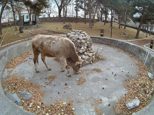От грузинского городка Степанцминда недалеко от границы с Россией до Тбилиси осталось 150 км. После отдыха в гостином доме "Кхвича" иду в центр ловить машину. В городском парке пасутся коровы, одна ходит в фонтане без воды.