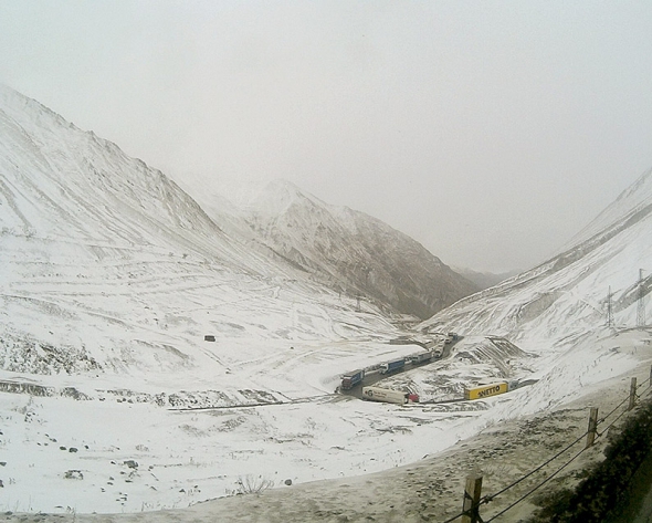 - У подножия 0 градусов, а наверху будет минус 14. Это дорогой смерти называется, - говорит дальнобойщик.