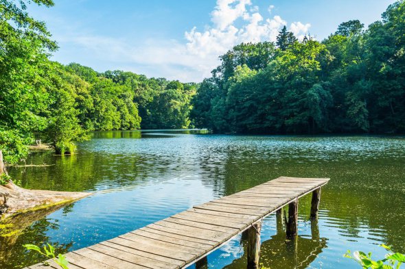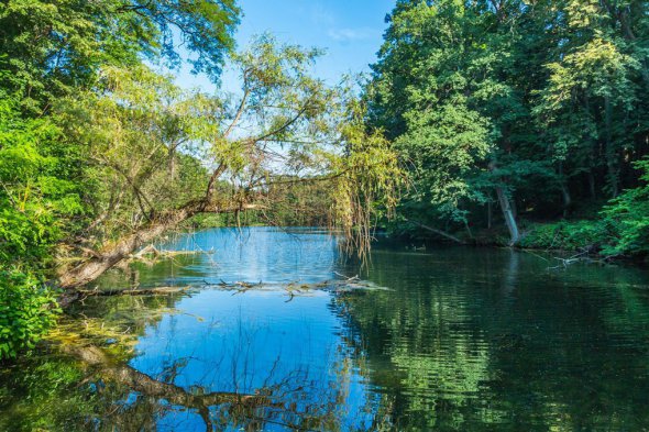 Переполненный чувствами помещик пригласил архитекторов изучить территорию. Выбор пал на реку Тростянец, протекавшую перед городом. Работа закипела. Сотни рабочих начали строить две огромные дамбы, чтобы потом создать живописный каскад озер, где на склонах раскинулся волшебный лес.