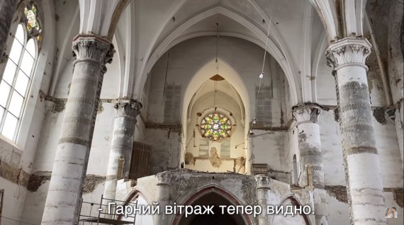 "Хороший витраж, который украшает храм, был зарисован зеленой масляной краской снаружи. Представьте, 2 человека отмывали и отчищали его в течение 8 дней. За время архива здесь было 3 этажа. Сейчас об этом свидетельствуют лишь следы на стенах. На 1-м этаже тогда была сплошная темнота, ведь окна начинались только со 2-го", - рассказал он.
