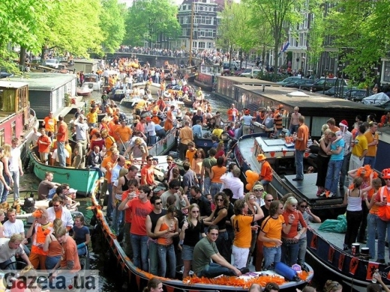 "Для Голландии это невероятное действо, - рассказала Gazeta.ua украинская эмигрантка 23-летняя Диана Брезинская, которая проживает в Нидерландах 7 лет. - Здесь люди очень закрытые и замкнутые, они не умеют дружить и отдыхать. Всегда мрачные, после работы идут домой и редко куда-то уходят. А здесь все отрываются. У кого есть лодки, те плавают по каналам. Гуляют по улицам в оранжевой одежде, на головы надевают оранжевые шляпы, кепки и разные уши. На лицах рисуют национальный флаг. Все пьют пиво".