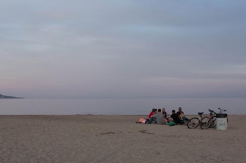 В первый же день поездки мы заблудились, и выехали за Барселону к морю. Несмотря на то, что это была далекая и забитая окраина, май считается несезоном и людей практически не было, - там уже работал общественный душ и была ухоженая детская площадка.