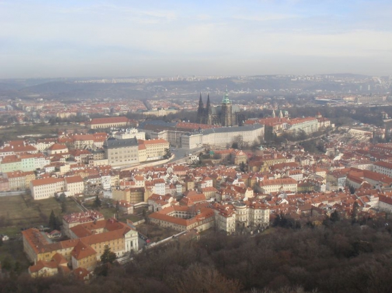Пересмотреть все достопримечательности за полтора дня - нереально. Чтобы выбрать, забираемся с подругой на Эйфелеву башню. Да, в Праге она тоже есть. Сооружена на Петрешинском холме в 1891 году, через три года после установления Эйфелевой башни в Париже. Копия меньше в 5 раз от оригинала. Ее высота - 60 метров. К вершине холма добирались на фуникулере, а саму башню есть два пути: лифт и лестница. Чтобы сэкономить на лифте (80 гривен) пошли пешком. Сверху открывался умопомрачительный вид на город. Кажется все это застроено старыми зданиями, лишь далеко на горизонте можно заметить современные многоэтажки. Определились с объектами и - вниз.