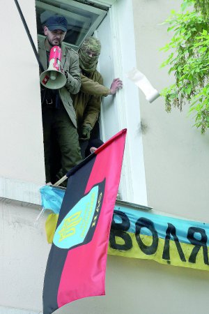В Киеве участники этой акции в сопровождении полицейских шли к аллее Славы. Их забросали краской и дымовыми шашками из офиса организации "Добровольческое движение ОУН" на ул. Мазепы. Полиция заблокировала штаб националистов, но они смогли бросить пакеты из окон.