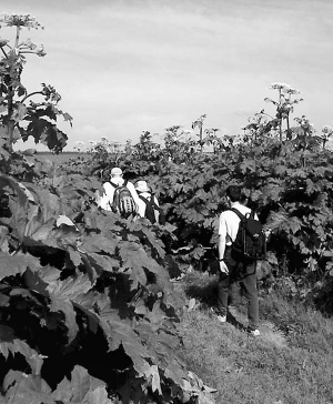- Борщевик Мантегациа выращивали как декоративное растение. Сейчас богачи сажают на своих клумбах. Не знают о вреде, который он наносит. Водители бывает через отверстие в стволе переливают бензин. А молодежь делает панамки или садится на листья борщевика, как на простыню. А потом лечат ожоги.