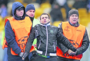- Стюарды повели его в специальную комнату, где в присутствии работников службы безопасности клуба, стадиона и милиции составили протокол об административной ответственности. Это болельщик - 20-летний киевлянин, проживающий в Соломенском районе, - рассказывает "ГПУ" по телефону вице-президент "Динамо" Алексей Семененко. – С виду был трезв, но вел себя неадекватно. Думаю, он был в состоянии наркотического опьянения. Все время улыбался. Начал говорить, что считает себя классным футболистом. Цитирую: "Я хотел показать тренерам и игрокам "Динамо", как надо играть, какой у меня стартовый рывок и удар".