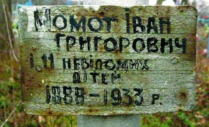 - Люди говорили, что это, по-видимому, учитель с учениками похоронен. В действительности было не так. Я встретился с внуком покойного Александром Алексеевичем, - рассказывает Мицик. - Ему дедову историю рассказала бабушка. Иван Григорьевич был мужчиной работящим. Разводил скот, имел коней. Как-то на сходке села решили построить кирпичную школу. Он выступил и сказал, что продает своих волов. Деньги отдает на строительство. Очень любил свою жену Марусю. Женились в 1914 году, имели сыновей Алексу, Николая и дочь Евгению. Комсомольцы и комнезамовцы пришли раскулачивать Ивана Момота первым. Забрали все: хлеб до зернышка, скот. У одного из тех, которые раскулачивали, проснулась совесть. Пришел к деду, рассказал, в какой кладовой зерно высыпано. Мол, там можно дыру просверлить и зерна где-то ведро насыплется. Момот не захотел. Умер Иван Григорьевич от голода в 1933 году. Мужчины на кладбище выкопали яму - его в селе уважали. Когда на следующий день принесли покойника в гробу, то в яме уже лежали 11 покойников. В школе для детей, у которых поумирали родители, создали патронат. Еды там тоже не было. Мертвых детей положили в готовую выкопанную яму. Родственники Момота сказали: он хотел, чтобы дети учились, пусть теперь вместе почивают. Так их вместе и похоронили.