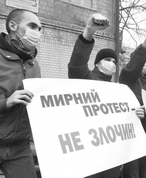 — Дикость, когда запрещают книгу лауреата Шевченковской премии (Олеся Ульяненко. — "ГПУ") или мультфильмы о Симпсонах, — говорит мужчина с бородкой, одетый в черный плащ. Это один из организаторов. Зачитывает требования: освободить Володарского, прекратить уголовное дело и наказать милиционеров, которые задержали художника.