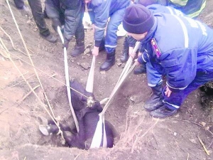 Колодец выложен бетонным кольцами диаметром 1 м. Воды в нем не было. Корова уперлась ногами в дно, веревка и передние копыта торчали. Хозяйка позвала на помощь соседей. Но те поняли, что животное весом 300 кг сами не вытянут. Спасатели запихнули под корову пожарные краны, чтобы поднять. Веревкой связали копыта и прицепили к машине. Корова все время мычала. Но когда достали, вела себя спокойно.