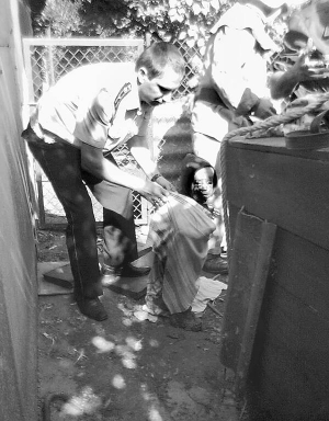 — Спасатели обвязали веревками соседа Сашу — он был самым худым, и спустили в яму, — вспоминает мать 36-летняя Валентина Руденко. — Мне сказали, чтобы я с сыном разговаривала. А он меня увидел, плачет, протянул руки и начал грузнуть еще глубже. У меня в глазах потемнело, потеряла сознание. Приезжала "скорая". Когда вытянули Мишу, сразу помыла. Он испугался, потому что боится темноты. Если вдруг с ним что-то случится, я не переживу, сделаю что-то с собой. Спрашивала того Сашу, как отблагодарить. Засмеялся, пива попросил.