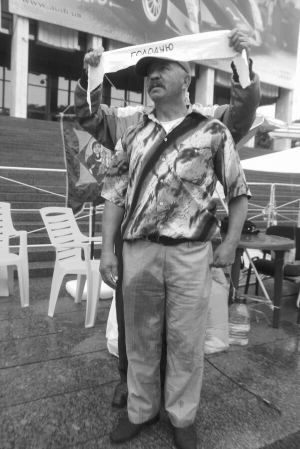 — Я уже бутерброд съел, бутылку пива пил, пачку сигарет скоптил, — отчитывается Тертичный. — Я уже один раз голодал. Был лет 10 назад такой Орендарчук — глава райгосадминистрации в Монастырище. Мы разбили три палатки вшестером, чтобы его устранить. Пять суток продержался. А потом ночью нас милиция разогнала. Ничего не добились.