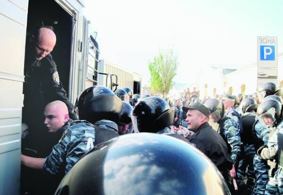 Активистов заталкивают в автозаки. Подавляющее большинство - ребята и молодые мужчины. Девушек отпускают, они сразу убегают. Из-под одной машины выскакивает парень в порванной футболке с вышивкой. Кричит: "Спасайте!" Делает несколько шагов, но его хватают "беркутовцы". Завязывается драка. Видевшие это люди бросаются на милиционеров, чтобы вырвать парня. Но им не удается. Когда автозаки заполняются, нескольких активистов сажают в автобус. Его окружает "Беркут". Автозаки и автобус отправляются. "Беркутовцы" бегут к своим автобусам.