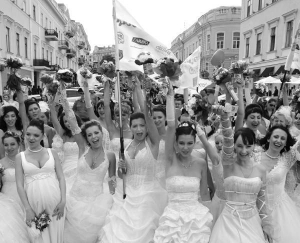 Полсотни замужних женщин одели свадебные платья на параде невест 23 мая в Одессе. Они прошлись по пл. Катерининской, Думской и Театральной, бульв. Приморскому, ул. Дерибасовской.