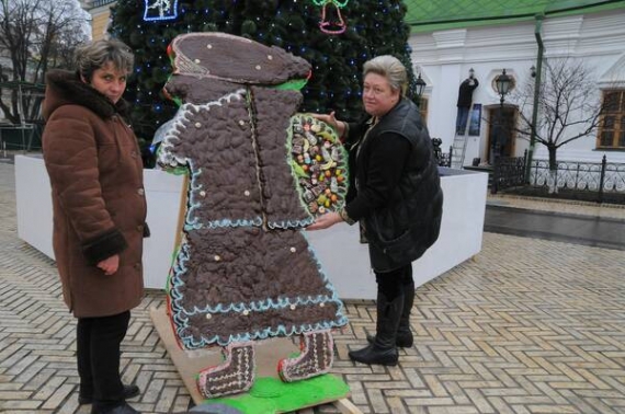 Наибольший в Украине пряник-николайчик установили во дворе Киево-Печерской лавры в среду в обед. Его высота 184 сантиметра, ширина - 70, весит 120 кг. С сегодняшнего дня им бесплатно будут угощать детей.