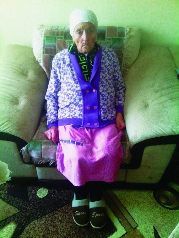 Через три дома от Галины Носко живет 90-летняя Надежда Довгопол. Ее дочь 60-летняя Галина Мазун провожает в просторную гостиную с большими окнами. Несколько минут ждем Надежду Ефимовну — одевается. Худая и высокая. На голове - белая косынка, поверх домашнего халата накинула теплую кофту. Садится в мягкое кресло под стеной.