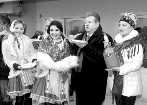 Праздновали Масленицу, устроили дегустацию блинов. Повара из ресторана жарили их во дворе. Затем Поплавский запел "Вареники мои". В то время рядом работала небольшая ярмарка, на которой торговали сувенирами.