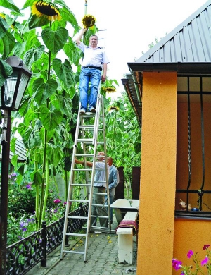 — Да никто о том подсолнухе и не знал бы, если бы я по телевизору программу не увидел. В ней говорили, что на Киевщине вырастили высотой 3,7 метра. Он является украшением, к нему съезжаются туристы. У меня только высота кухни три метра. А мой подсолнух чуть ли не в половину выше ее, — рассказывает 52-летний Николай Федорчук из города Нетишин на Хмельнитчине.