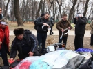 — Всего оказали помощь семерым, — добавляет глава Первомайской организации "Союз Чернобыль" 56-летний Николай Костев. У него в левой ноздре торчит кусок белой ткани, чтобы кровь не шла носом. — У них гипертония, сердечные приступы. Есть люди после инсульта. Двое уже уехали — со Львова и Донецка. Ночь у нас прошла в листьях с друзьями человека — собаками. А друзья человека из Кабмина спали дома.
