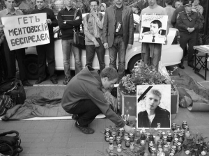 — В прошлом году Игорю не удалось переночевать в Шевченковском райотделе. Надеемся, нам удастся, — говорит в громкоговоритель 28-летняя Юлия Смирнова. — Мы будем требовать наказания убийцы. Он до сих пор работает в этом райотделе.
