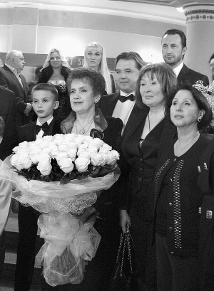 В фойе Донецкого национального театра оперы и балета Людмилу Александровну встречают с ее любимыми белыми розами. Цветы дарит основатель фестиваля Вадим Писарев, руководители города, супруги Кучмы.