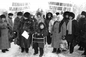- Я села в дверях и сказала: "Надеюсь вы инвалида не выбросите?" - Говорит на русском председатель общественной организации "Жены шахтеров" Галина Петровна, 63 года. - Только после этого вышел заместитель губернатора Владимир Ишков. А до этого охрана обзывала нас, даже в туалет не давали пройти.