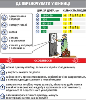 — Моя дочь ездит на подготовительные курсы в политех, — рассказывает по телефону 37-летняя Маргарита Зелинская из Хмельника. — Учится в субботу и воскресенье. Занятия начинаются в девять утра. Первый месяц возвращалась после курсов домой, но ездить так трудно. Так мы решили снимать на выходные квартиру. Дочь списалась в соцсети с детьми, которые ездят на подготовку в этот вуз и в другие, теперь снимают жилье на выходные. В однокомнатке их ночует шестеро. В квартире есть два дивана и два раскладных кресла. Договариваемся с владельцем предварительно. За сутки каждой выходит 30 гривен. К тому же там есть кухня, холодильник, электрочайник и микроволновка. Готовят еду по очереди.