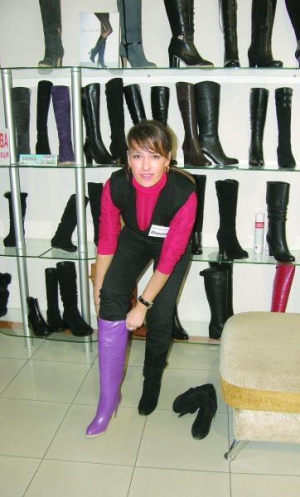 "Чем длиннее голенища, тем моднее сапоги, — говорит Марина Воркина, продавец магазина "Раса" в Виннице. — Этой зимой актуальные цвета — сиреневый, ярко-синий, смородиновый.