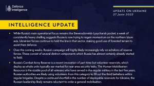 Об этом сообщила пресс-служба Минобороны Великобритании 27 июня со ссылкой на свои разведданные.