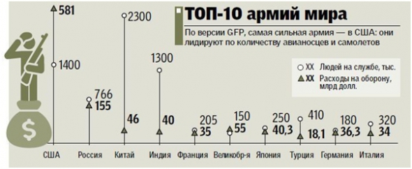 А тройку лидеров в Европе составляют армии Франции, Великобритании и Германии.