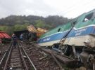 Авария произошла, когда поезд переезжал через мост. Некоторые вагоны зависли над мостом, а некоторые упали вниз, в реку.
