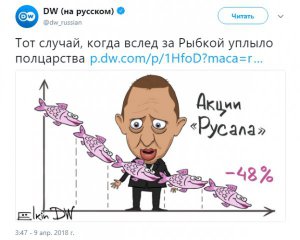 Российский карикатурист Сергей Ёлкин высмеял падение акций компании российского бизнесмена Олега Дерипаски "Русал".