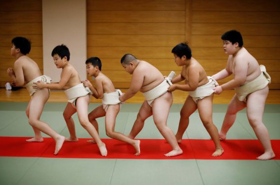 "Я ничему его не учил. Он делал все естественно. У него талант к сумо. Выиграл детский турнир. Я подумал, что у него может быть что-то особенное", - говорит Тайсуке, бывший борец-любитель сумо.