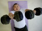 В Японии отец тренирует сына борьбе сумо и достиг того, что в 10 лет ребенок весит 85 кг.