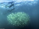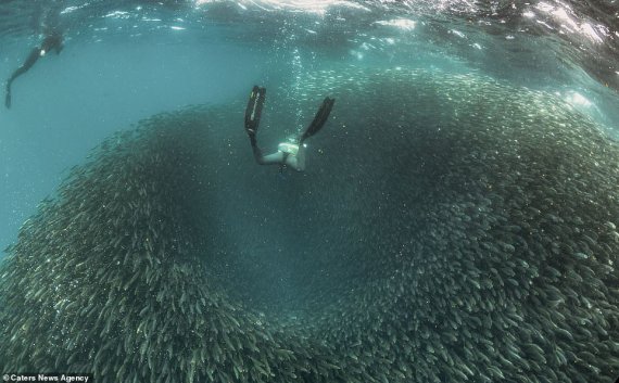 На его снимках в Daily Mail видно, как тысячи рыб группируются в так называемые клубы, чтобы защититься от хищников. Иногда размеры такого клубка достигают 20 м в диаметре.