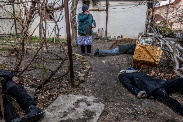 На фото из Бучи - женщина во дворе в ужасе смотрит на тела трех погибших жителей. Когда Асет Чад увидела фото, ее затрясло. Она перенеслась на 22 года назад. В феврале 2000 года она зашла во двор к соседке в Чечне и увидела тела троих мужчин и женщины, которых расстреляли на глазах их 8-летней дочери. Правозащитники установили, что российские солдаты захватили тогда деревню возле Грозного и убили не менее 60 человек, изнасиловали не менее шести женщин и вырвали у жертв золотые зубы.