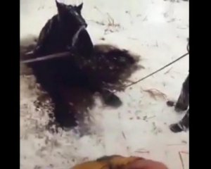 Скотт собрал небольшую группу соседей. Чтобы вытащить лошадь, потратили почти 3 часа. Сначала обвязали ее веревками и привязали к саням. Не смогли сдвинуть с места. Тогда взяли у спасателей снегоход. Однако ремень машины не выдержал веса и порвался. Не оставалось ничего другого, как попытаться снова использовать веревку.